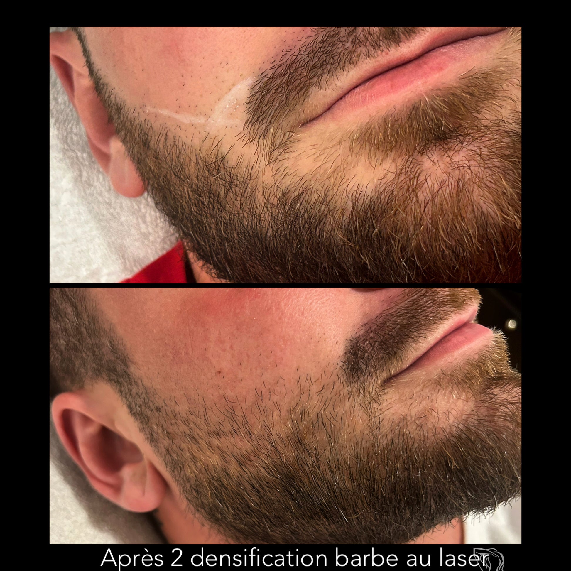 Résultats : barbe plus fournie, densité naturelle, amélioration esthétique visible.